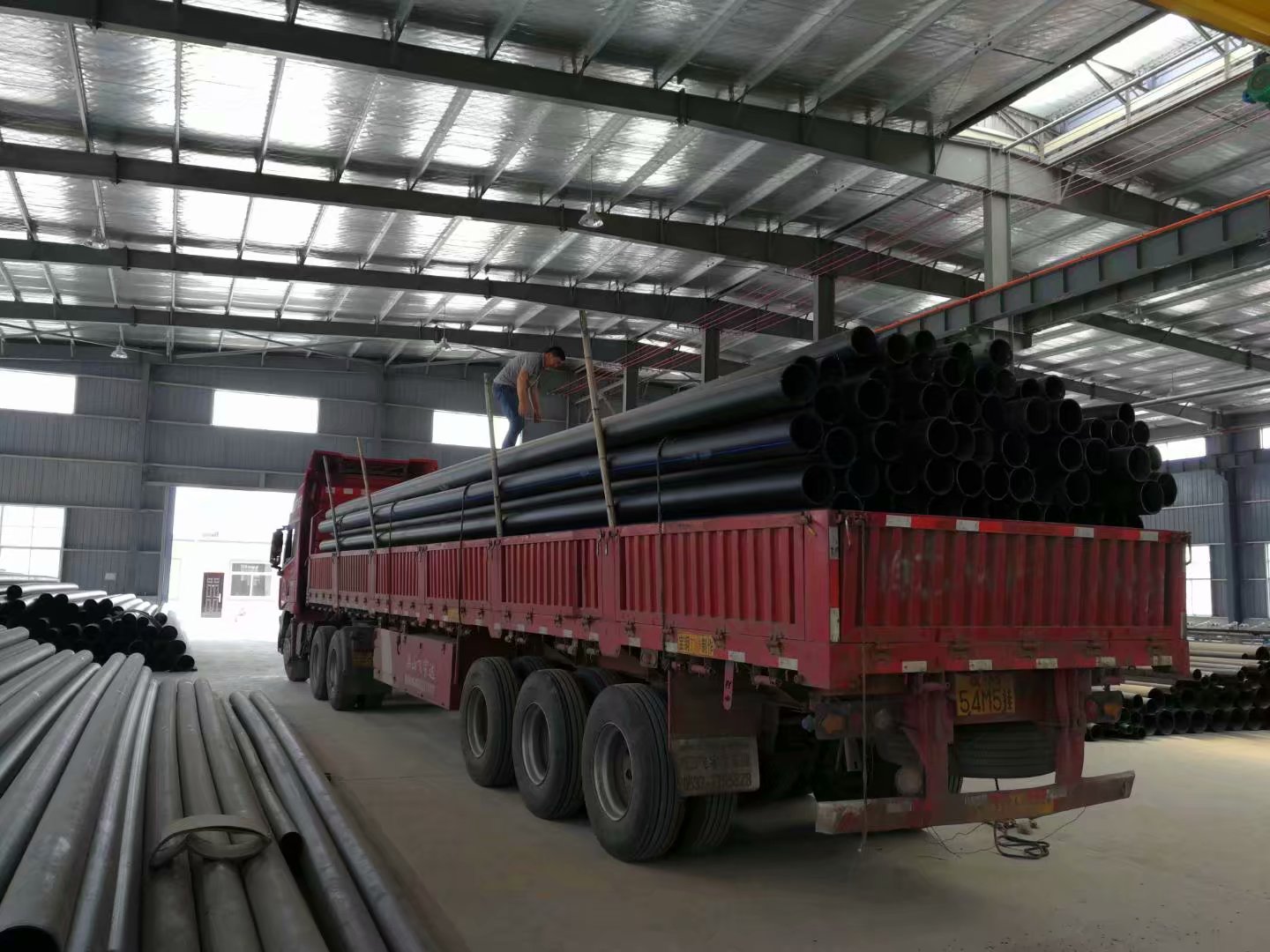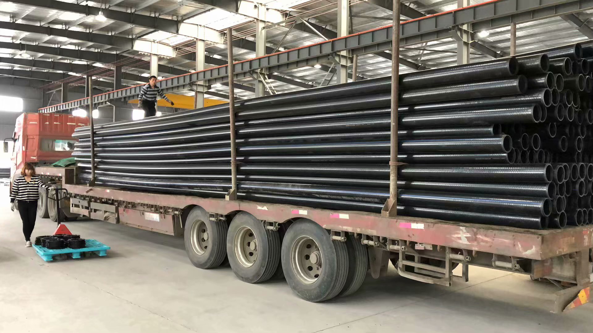 管材搬運(yùn)時(shí)必須采用軟保護(hù)吊裝帶進(jìn)行裝卸,吊裝應(yīng)吊2點(diǎn),使撓度變形不宜過(guò)大。